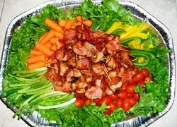 An easy to make recipe for party appetizers.  Pork loin, wrapped in bacon, and smothered in BBQ sauce.  Pair with fresh vegetables, and serve.